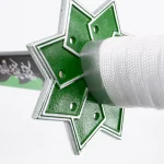 Katana S5062 de Demon Slayer empuñada por Shinazugawa Sanemi réplica no oficial de 105 cm hoja de bambú acabada en negro con detalles en color verde, mango con encordado negro en el centro y blanco en los extremos y con piel de imitación de raya color negra con funda negra y detalles blancos. Ref. S5062