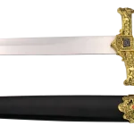diciembre 18, 2024Daga S0189 Masónica replica no oficial,el pomo y la guarda son de color dorado con detalles en niquel y la empuñadura en color dorado con una franja en medio de polipiel en color rojo. El tamaño total es de 55.5cm de hoja de acero. La vaina es de color negro con acabados en dorado y detalles en rojo. Ref. S0189