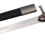 Daga 10762 Tempraria con la leyenda Heaven of Dingdom, Reino de los Cielos replica no oficial , el pomo es de color niquel con un detale de una cruz en rojo, la guarda es de color niquel con la empuñadura es de color negro con lineas en rojo. El tamaño total es de 40cm con la hoja de acero. La vaina es de color negro con acabados en niquel con franjas cruzadas en color rojo. Ref. 10762
