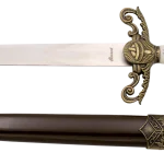 diciembre 18, 2024Daga 13747-2 Medieval, el pomo es un casco de color bronce del mismo color que la guarda, la empuñadura es de color blanco con un dibujo en negro. El tamaño total es de 35cm y la hoja de acero. La vaina es negra con detalles en bronce. Ref. 13747-2