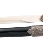 diciembre 18, 2024Daga 15782 Medieval, pomo y guarda en color niquel con la empuñadura en negro. El tamaño total es de 39.5cm con la hoja de acero. La vaina es de color negro con detalles en color niquel. Ref. 15782