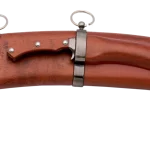 Daga 26186 Falcata Dragón con cuchillo, el pomo es un dragon en color niquel, la empuñadura de color madera con la guarda en color niquel. El tamaño total es de 43.5cm con la hoja de acero. La vaina es de color madera con acabados en color niquel y lleva un cuchillo en un lateral. Ref. 26186