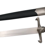 Daga 10407, el pomo y la guarda es de color niquel con la empuñadura negra con grabados de aguilas. El tamaño total es de 27cm y la hoja de acero contiene dibujos. La vaina metálica es de color negro con acabados en niquel. Ref. 10407