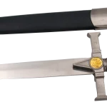 Daga S0171G Medieval masonica, el pomo y la guarda son de color niquel con detalles en dorado y la empuñadura en negro. El tamaño total es de 42cm con la hoja de acero. La vaina es negra con acabados en niquel. Ref. S0171G