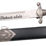 diciembre 18, 2024Daga S0213WS Diseño exclusivo Priorato de Sion, el pomo tiene forma de casco en color bronce con detalles en rojo, la guarda contiene un pequeño escudo en color bronce con acabados en rojo y la empuñadura en color marfil con un dibujo de un templario. El tamaño total es de 39.5cm de hoja de acero grabada. La vaina es de color marfil con acabados en color bronce y franjas cruzadas en rojo. Ref. S0213WS