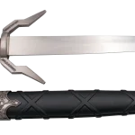 Daga S0224, replicas en miniatura de espadas de The Witcher, el pomo y la guarda son de color niquel con la empuñadura en color negro con acabados en niquel. El tamaño total es de 40cm de hoja en acero. La vaina es de color negro con acabados en niquel. Ref. S0224