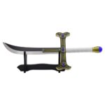Espada S7014 Modelo de Milhawk de One Pice, Modelo No oficial, con un tamaño total 117 cm, hoja de acero en color negro y metal con decorados en dorado y perlas en azul, mango encordado en color blanco con acabado en dorado y un brillante en azul al final. Funda forrada en polipiel en negro . Ref. S7014