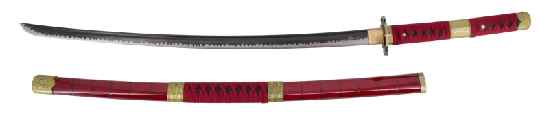 diciembre 16, 2024Katana Funcional S5019H Sandai Kitetsu de Zoro de One Piece réplica no oficial de 102 cm hoja de acero al carbono AISI 1045, mango con encordado burdeos, con soporte. Ref. S5019H