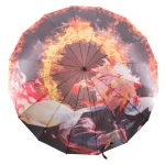 Katana Paraguas S0317 de Demon Slayer modelo Rengoku Kyoujurou réplica no oficial, mango con encordado blanco de imitación de piel, el diámetro del paraguas abierto es de 110 cm. Ref. S0317