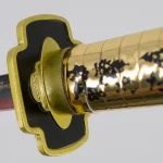 Katana S0291 de Demon Slayer empuñada por Yoriichi Tsugikuni réplica no oficial de 40 cm hoja de acero acabada en negro con corte en rojo, mango con amarillo, vaina negra con detalles en dorado. Ref. S0291
