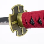 Katana S5054 Sandai Kitetsu de Zoro de One Piece réplica no oficial de 45 cm hoja de acero negra con dentado satinado, mango con encordado burdeos, con soporte. Ref. S5054