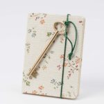 Libreta textil flores con rotulador llave dorada 18,4x13cm.