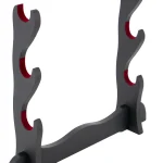Soporte S5066 para tres Katanas hecho en madera negra y con tercipoleo rojo en la zona de apoyo de las katanas. Ref. S5066