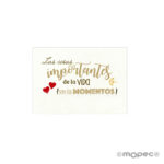 Tarjeta precortada marrón con mensaje LAS COSAS IMPORTANTES
