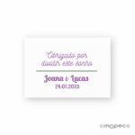 Tarjeta precortada Obrigado por compartir….texto lila y verde 5×3,5cm.