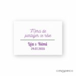 febrero 26, 2025Tarjeta precortada Obrigado por compartir….texto lila y verde 5×3,5cm.
